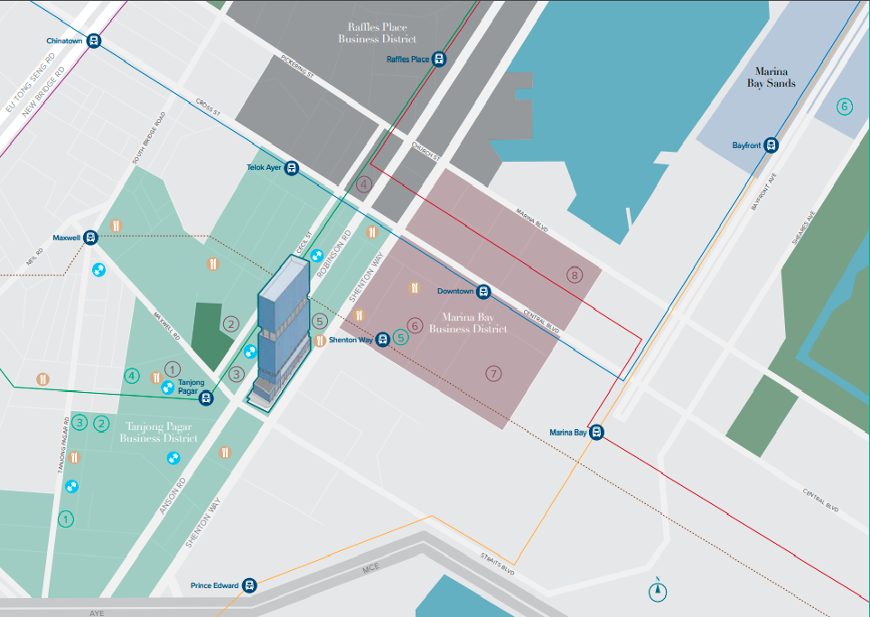 With convenience and comfort in mind, the location offers direct sheltered access to Tanjong Pagar MRT station on the East-West line, while the future Shenton Way MRT station on the Thomson-East Coast line is within a short 200 metres. Numerous bus routes are also in close proximity for added transport connectivity.
